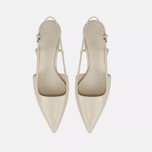 Chic beige pointed slingback heels. Ideal for versatile styling.