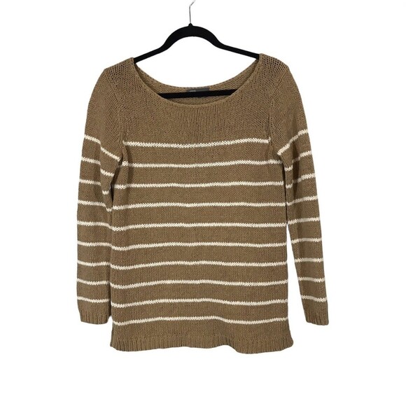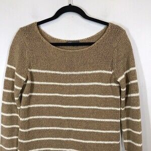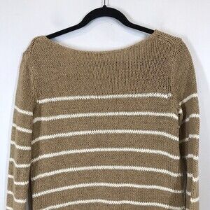 Vince Beige Stripe Womens Medium Pullover Chain Knit Comfort Sweater