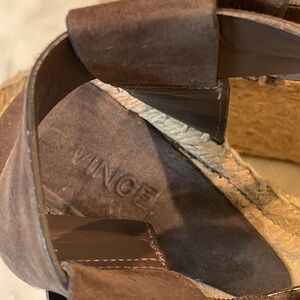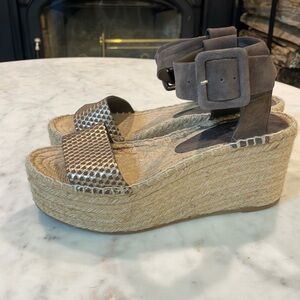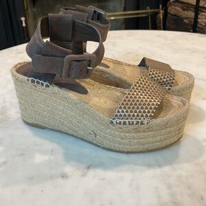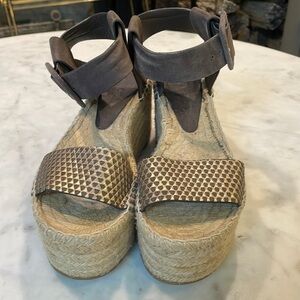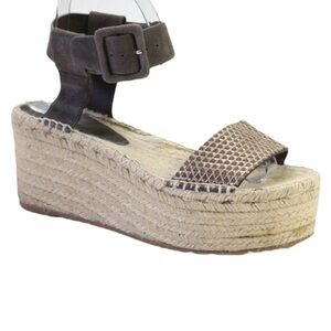 Vince Women's Platform Espadrille Suede Sandals Gray Size 6. In my opinion they run large. Please see measurement of foot bed.