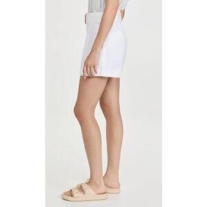Vince Belted Twill Short in Optic White. Size 8. Features high waist, belted, side pockets, back patch pockets, and front pleated details. Style V836822099. 73% Cotton, 26% Linen, 1% Elastane. Excellent condition, no flaws.
