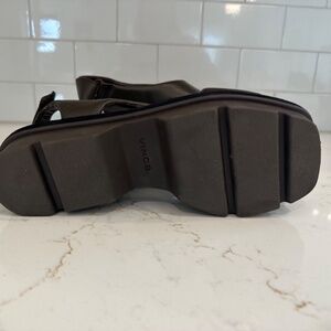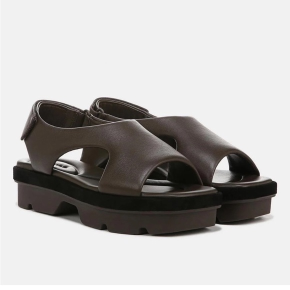 Chic lug sole slingback sandals by Vince. EU 37.5. Puffy leather uppers. Velcro strap. Square toe. Never Worn. Too big for me, but so stylish.