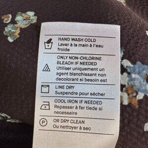 Vince Black Blue Scattered Floral Print 100% Silk Mother of Pearl Button Blouse