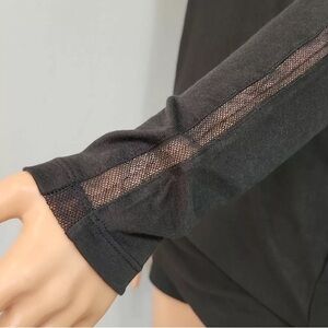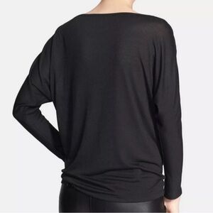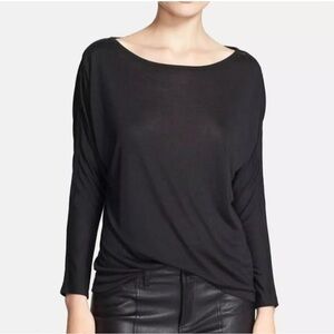 Vince Black Dolman Long Sleeve Rayon Top Minimalist Mesh Detail Boat Neck Size S