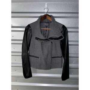 Vince Black & Gray Lambskin Leather Knit Racer Jacket Size XS