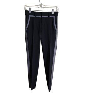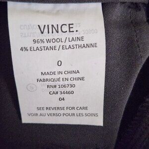 Vince Black Gray Striped Wool Career Pants Size 0. Waist 14", Rise 9", Inseam 29", Black Gray Tuxedo Stripe, Stretch Wool, Pockets, Career Wear, Office, Dress Up, Designer. Like New Condition, Pre-Owned