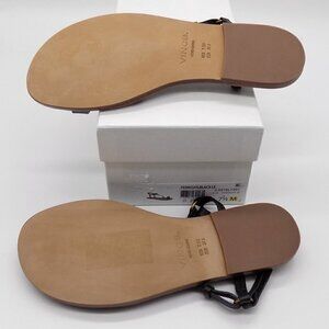 Vince Black Leather Flat Sandals Perrigan Hook & Loop Closure Toe Ring