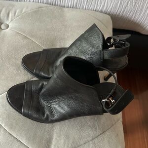 Worn but still have so much life. Main sign of wear is on stiletto heel. These Vince black leather heels feature a sleek pointed toe and a sophisticated stiletto heel, perfect for formal or business attire. The open-back mule style adds a modern touch, while the high-quality leather with a subtle grain texture ensures a refined look.