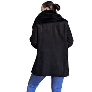 Vince Black Merino Lamb Shearling Hooded Coat, Size Large