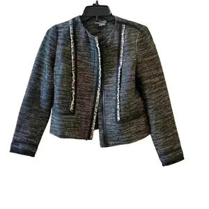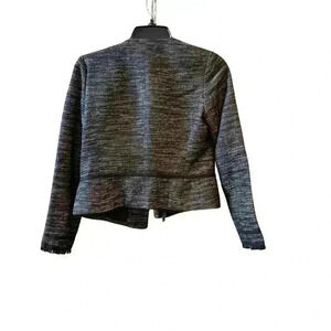 EUC Vince Black Off White Zip Up Tweed Jacket/Blazer with leather trim Size 2.