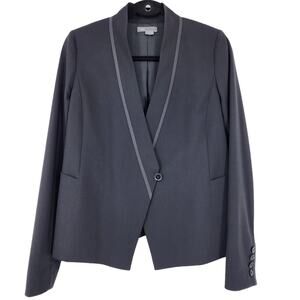 Vince Black One Button Asymmetrical Wool Cotton Blend Fitted Blazer Size 10