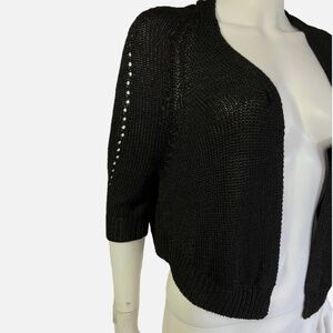 Vince Black Open Knit Cardigan Shrug S 3/4 Sleeve, fabric sheen