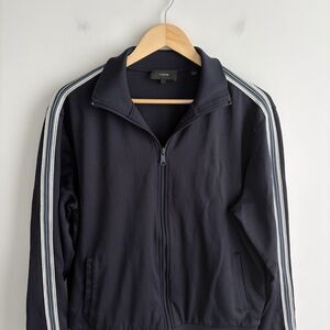 Vince Black Performance Jacket and Joggers with White Stripes track suit.