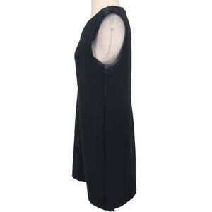 Black crepe with tiny chiffon seam inserts at sides, front, back and neckline. No pockets. Lined. Pullover styling. Loose fit. Size XS