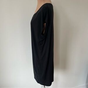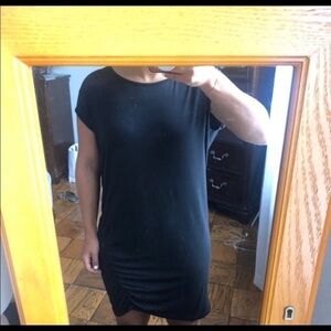 Vince Black Stretch Modal Wool Blend Diagonal Shirred T-Shirt Dress Size Small