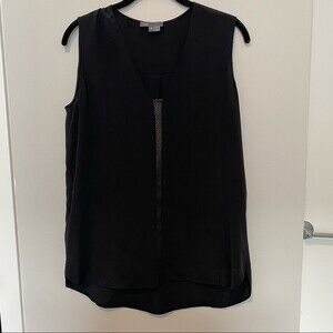 Vince Black Tank Top Silk Perforated Lamb Leather Classic Minimalist Medium