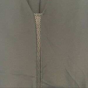Features: oversized, boxy cut, v-neck, neutral, elevated basic, pleated back, vertical perforated leather stripe down the middle, versatile top