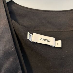 Vince Black V-Neck Blouse Satin Neck Tunic Top Size XS Oversized Sleeveless