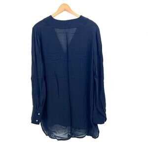 Vince Black V-Neck Long Sleeve Popover Tunic Top Hi-Low Hem Womens Size Large