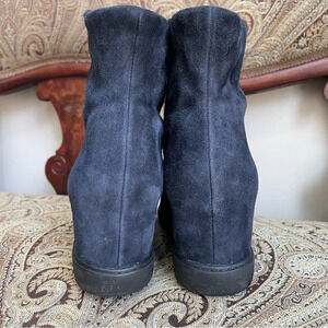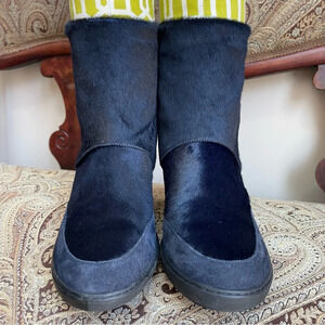 Chic black wedge boots. Sleek design. Perfect for any occasion.