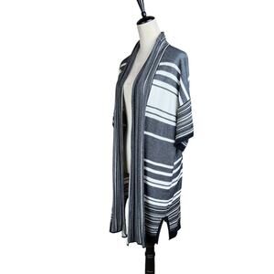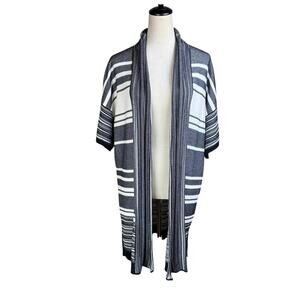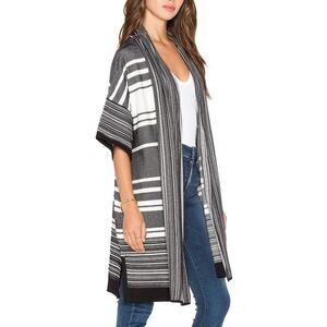 Vince Black & White Stripe Knit Short Sleeve Longline Open Cardigan Sweater