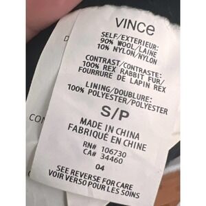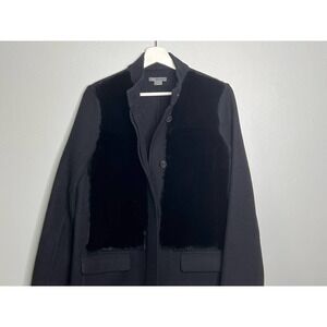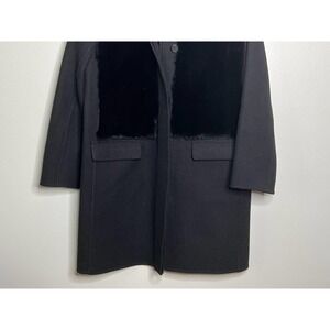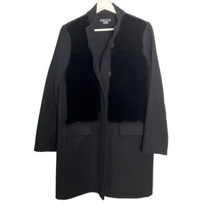 $1395 Vince Black Wool Rabbit Fur Paneled Coat Size S