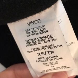 Vince Black Wool Rabbit Fur Paneled Coat XS Academia Classic Kardashian worned