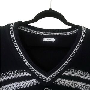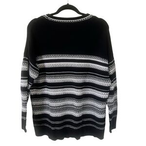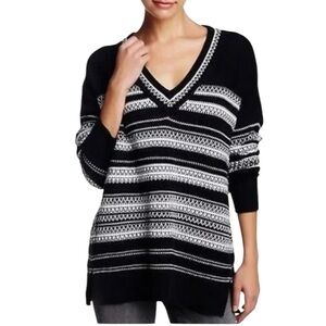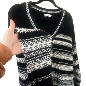 Stay cozy and stylish with this black and white V-neck sweater. Perfect for any casual outing.