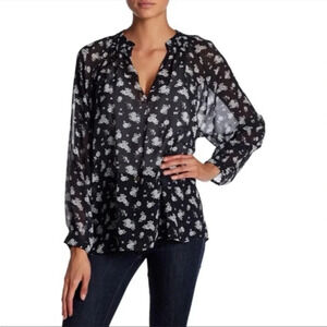 Vince Blouse Silk Calico Sheer Floral M Romantic Boho Fairy Grunge Whimsigoth