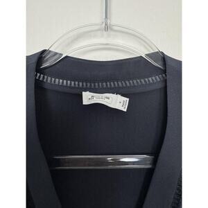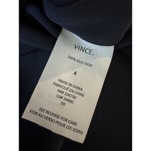 Vince Blouse Womens 4 Navy 100% Silk Long Sleeve Button Front Tunic Top