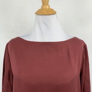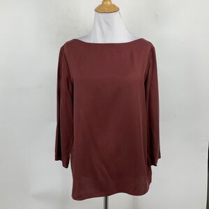 Vince Blouse Womens M Medium Mahogany Silk Rayon Blend Boat Neck 3/4 Sleeves