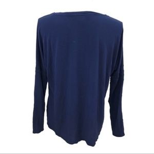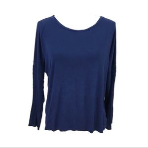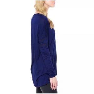 VINCE drop shoulder long sleeve top, size M. Blue in color. Mesh inserts on sleeves. No composition tag but feels like a lightweight cotton material. Gently used condition - no flaws noted.