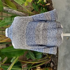Vince Blue Gray Chunky Knit Cardigan Striped Oversized Sweater size medium large. Excellent pre-owned condition. Smoke free pet friendly home. Please see pictures for measurements. Chunky oversized sweater. Color block design with striped blue and gray pattern. Dropped shoulder seams. Stand collar and 3/4 sleeves. Medium large blue gray chunky knit sweater cardigan Vince