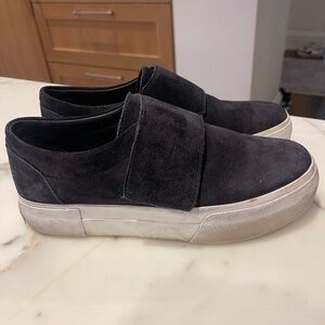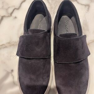 Blue suede shoes! Vince makes a sturdy comfortable shoe and these are attractive to boot. Velcro closure, US SIZE 35.5 Look great w jeans!