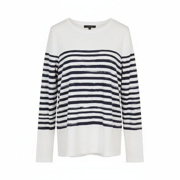 Vince Blue & White Striped Crew Neck Tee - Size S, Long Sleeve, French Girl