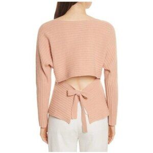 Effortlessly refined with a modern twist, this Vince tie-back sweater in soft blush pink combines minimalist elegance with luxurious comfort. Crafted from a premium wool-cashmere blend, it features a relaxed silhouette, ribbed texture, and an open back with a self-tie detail for a feminine, unexpected finish.