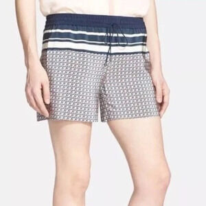 Vince Border Print Coastal Navy Blue Tie-Front Silk Shorts size small