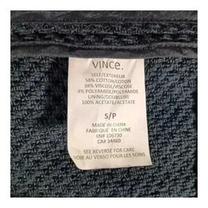 Elevate your style with this stunning Vince Boucle Moto Jacket in navy blue. Tailored for women in size small, this jacket features a cotton blend outer shell material with a tweed fabric type. The jacket is designed with a full zip closure and a collared neckline for a sophisticated look. The jacket also comes with various accents such as fringe, zipper, and pockets, making it a versatile piece for casual, workwear, or business occasions. The jacket has a short length and long sleeves, and the pit to pit measurement is 17.5". The jacket is dry clean only and has a solid pattern. Get ready to rock this designer jacket from Vince!