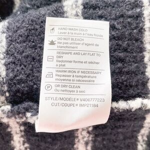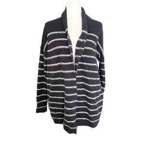 Cozy navy blue and white striped wool cardigan by Vince. Open front, long length. Approximately 29.5" long and 22.5" armpit to armpit.