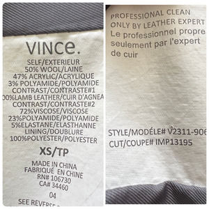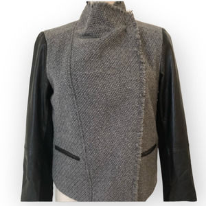 Vince Boucle Scuba Jacket with Leather Sleeves Size XS