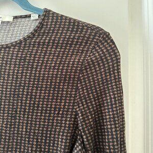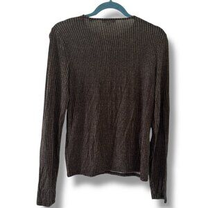 Vince Brown Black Houndstooth Crew-Neck Long Sleeve Top Women's Size Medium