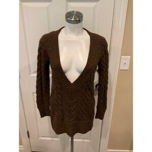Vince Brown Wool Blend Cable-knit V-Neck Sweater, Size Small