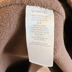 Timeless and elevated, this Vince oversized coat in rich chocolate brown is crafted from a premium Italian wool blend (75% wool, 25% nylon). Features include a double-breasted front, strong lapels, front pockets, and long sleeves. Hits at 42" from shoulder to hem. Size Small with a relaxed, structured silhouette.