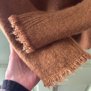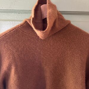 Vince Brown rust Cashmere wool Blend Raw Hem Turtleneck Sweater cropped