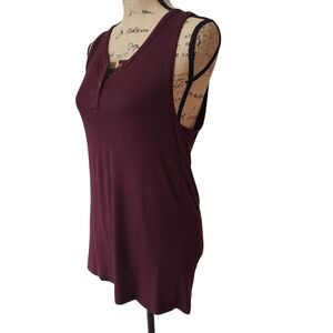 Vince Burgundy Sleeveless Henley Tank Top - Large