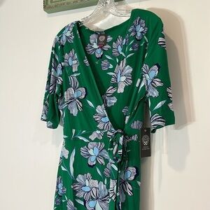 Vince CAMUTO wrap mini dress size 14 green blue floral print new women’s new nwt