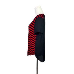 Vince CAMUTO top women’s size small red and black stripe semi sheer short sleeve