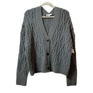 Vince Interlocking Cable Knit Merino Wool Gray Cardigan Sweater Size L New