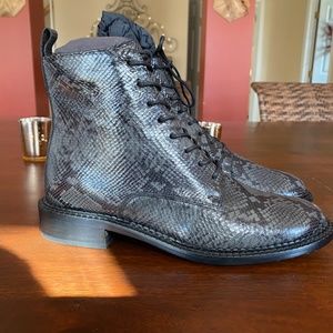 Snake print leather booties