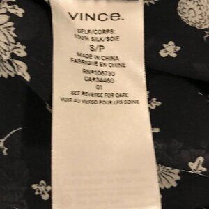Vince Calico Black and White Floral Print Silk Blouse - Size Small