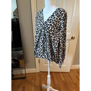 This stunning Vince Camuto blouse features a high-low hemline and a faux wrap design, making it a must-have for any fashion-forward woman. The animal print pattern adds a touch of wildness to the blouse, while the multicolor design makes it versatile enough to pair with any outfit.